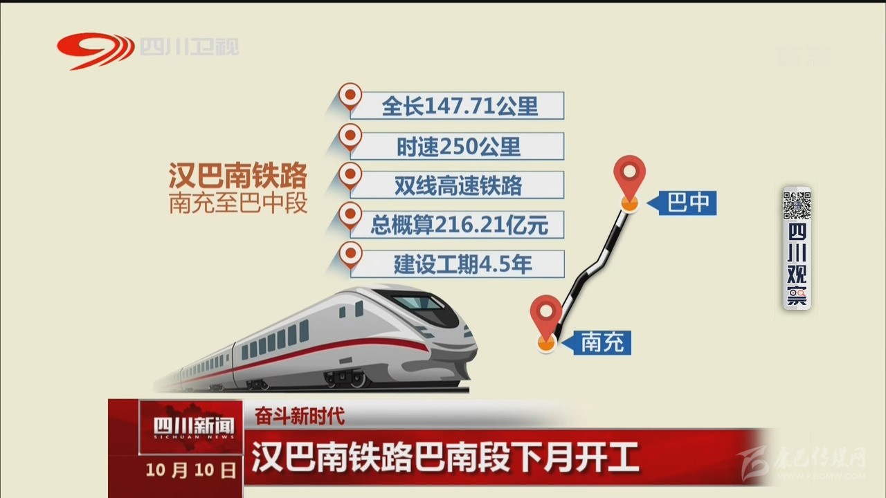 近日,省發(fā)改委對(duì)新建漢巴南鐵路南充至巴中段初步設(shè)計(jì)進(jìn)行了批復(fù)。項(xiàng)目正線全長(zhǎng)147.71公里,時(shí)速250公里,為雙線高速鐵路,總概算為216.21億元,建設(shè)工期4年半,由省鐵投集團(tuán)公司和南充市、巴中市人民政府共同籌資建設(shè)。項(xiàng)目預(yù)計(jì)11月底全線開工建設(shè),到2024年建成通車后,巴中至南充最短運(yùn)行時(shí)間約為35分鐘,待成南達(dá)萬(wàn)鐵路建成投運(yùn)后,巴中至成都運(yùn)行時(shí)間可縮短至75分鐘左右。