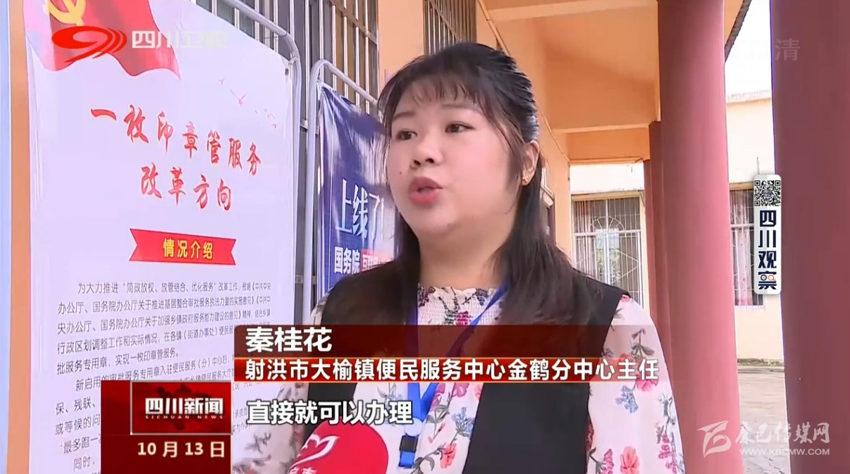 射洪市大榆鎮(zhèn)便民服務(wù)中心金鶴分中心主任秦桂花說(shuō):“現(xiàn)在這個(gè)一枚印章整合之后 這邊分中心直接就可以辦理 非常的便民。”