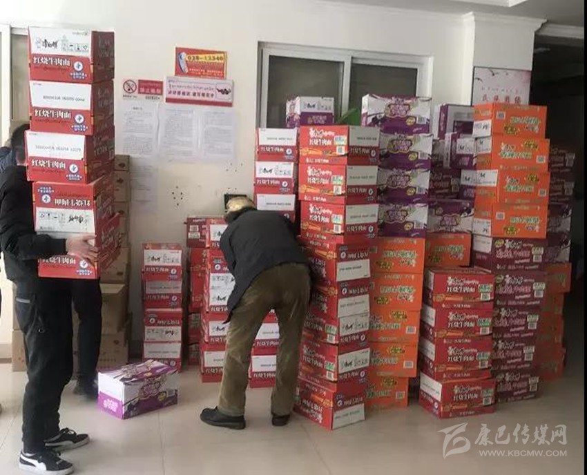 一箱箱方便面、牛奶、餅干等物資被搬運進了康定市衛(wèi)生健康局的大廳。