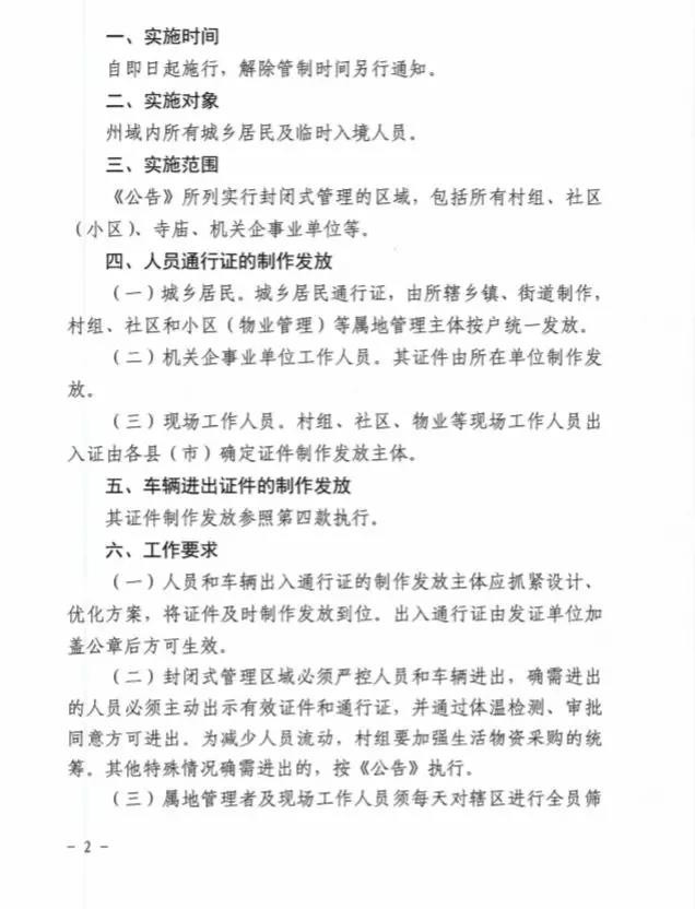 為進(jìn)一步做好全州新型冠狀病毒肺炎疫情防控工作,最大程度保障人民群眾生命安全和身體健康,最大限度減少人員流動最大力度防止和遏制疫情傳播蔓延,根據(jù)《中華人民共和國突發(fā)事件應(yīng)對法》《中華人民共和國傳染病防治法》等法律法規(guī)和《甘孜州應(yīng)對新型冠狀病毒感染肺炎疫情應(yīng)急指揮部公告(第5號)》(以下簡稱《公告》),自即日起,州域內(nèi)所有人員和車輛出入封閉式管理區(qū)域?qū)嵭信R時管制,均憑證通行。現(xiàn)將有關(guān)事宜通知如下。