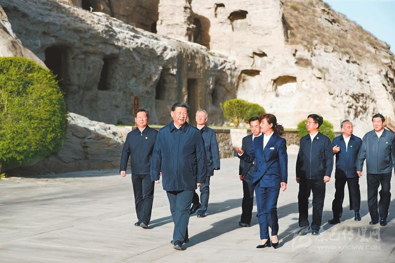 傍晚時分,習(xí)近平來到云岡石窟考察。云岡石窟始建于1500多年前,是中外文化、中國少數(shù)民族文化和中原文化、佛教藝術(shù)與石刻藝術(shù)相融合的一座文化藝術(shù)寶庫。習(xí)近平仔細察看雕塑、壁畫,不時向工作人員詢問石窟歷史文化遺產(chǎn)保護等情況。他強調(diào),云岡石窟是世界文化遺產(chǎn),保護好云岡石窟,不僅具有中國意義,而且具有世界意義。歷史文化遺產(chǎn)是不可再生、不可替代的寶貴資源,要始終把保護放在第一位。發(fā)展旅游要以保護為前提,不能過度商業(yè)化,讓旅游成為人們感悟中華文化、增強文化自信的過程。要深入挖掘云岡石窟蘊含的各民族交往交流交融的歷史內(nèi)涵,增強中華民族共同體意識。游客們看到總書記,紛紛高呼:“總書記好!”習(xí)近平向大家揮手致意,并叮囑景區(qū)工作人員在常態(tài)化疫情防控下要加強引導(dǎo)、控制人流,避免因大規(guī)模人員聚集引發(fā)疫情復(fù)燃。