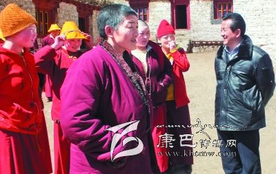 在雅江縣委、縣人大常委會主要領導及統(tǒng)戰(zhàn)、宗教部門的陪同下,李康來到距縣城90多公里的雅江縣紅龍鄉(xiāng)158k覺姆寺,同寺管會成員和部分僧尼進行座談。他詳細了解寺廟的基本情況,仔細詢問僧尼的生產(chǎn)生活和寺廟佛事活動開展情況,認真傾聽僧尼的反映和訴求,對僧尼提出的困難和問題詳細記錄,認真答復,耐心細致地講解宣傳黨的民族宗教和惠寺惠僧政策。座談會上,李康主任簡短的開場白很快拉近了大家的距離,他說,這次專門到寺廟的目的就是看望大家,建立聯(lián)系,了解情況,收集問題,希望大家暢所欲言,互相溝通,加強交流,增進了解,共同推進寺廟的健康有序發(fā)展。當他了解到該寺的水、電問題在縣委、政府的關(guān)心重視下,今年即將得到解決時,他說,州、縣黨委、政府歷來十分關(guān)心寺廟的基礎設施建設和廣大僧尼的生產(chǎn)生活、健康醫(yī)療等問題,寺廟的水電、道路、通信等基礎設施始終得到了黨委、政府的關(guān)心支持,僧尼的醫(yī)保、養(yǎng)老和最低生活保障等生活保障措施正在全州寺廟全面覆蓋。對寺廟的其他困難和問題,州、縣將積極協(xié)調(diào),盡快解決。他強調(diào)指出,158k覺姆寺近年來通過縣委、政府綜合施策,強化教育,規(guī)范管理,寺廟整體情況良好,步入了依法管理的良性軌道。他講到,我們黨的民族宗教政策是長期的、一貫的,寺廟作為基本社會單元,僧尼作為普通公民和基本群眾,要自覺接受當?shù)攸h委、政府依法管理,維護祖國統(tǒng)一、民族團結(jié)和法制尊嚴,推動宗教與社會主義社會相適應,與現(xiàn)代文明進程相協(xié)調(diào),積極投入全州發(fā)展中來,共同建設好我們的和諧幸福家園。任何寺廟只要服從當?shù)攸h委、政府的管理,認真貫徹落實好藏傳佛教的各項管理規(guī)定,真正發(fā)揮好宗教的正面積極作用,寺廟才會得到黨委、政府更多的關(guān)心支持,才會得到更好的健康發(fā)展。他希望158k覺姆寺要依法加強宗教事務的管理,深入貫徹落實《甘孜州藏傳佛教事務條例實施細則》,促進依法治寺、規(guī)范管寺,為維護正常宗教秩序、服務經(jīng)濟社會發(fā)展、促進社會和諧穩(wěn)定做出積極貢獻。