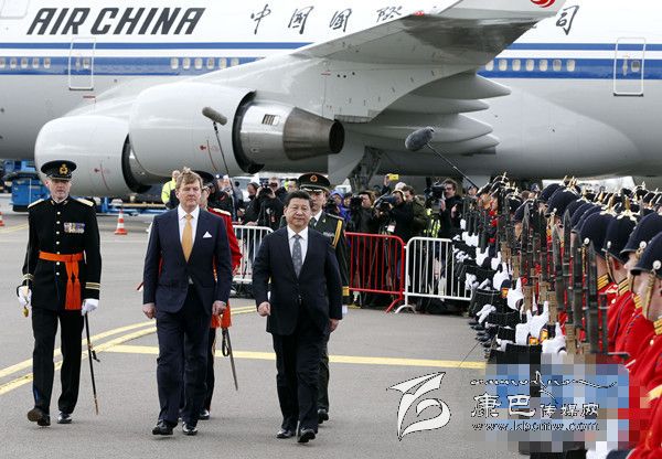 3月22日,國(guó)家主席習(xí)近平抵達(dá)阿姆斯特丹,應(yīng)荷蘭國(guó)王威廉-亞歷山大邀請(qǐng),對(duì)荷蘭進(jìn)行國(guó)事訪問(wèn),開啟歐洲之旅。威廉-亞歷山大在機(jī)場(chǎng)為習(xí)近平舉行隆重歡迎儀式。這是習(xí)近平在威廉-亞歷山大陪同下檢閱儀仗隊(duì)。新華社記者 鞠鵬 攝