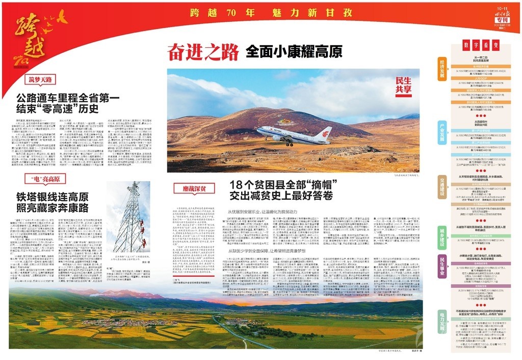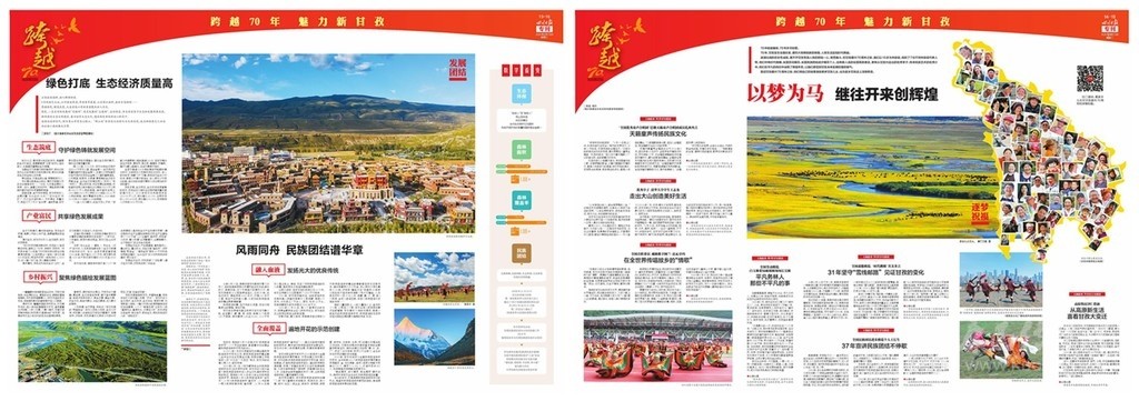 為慶祝甘孜建州70周年,《四川日?qǐng)?bào)》于9月15日推出八連版特別報(bào)道,整體以紅色打底,充滿喜慶的祝福。