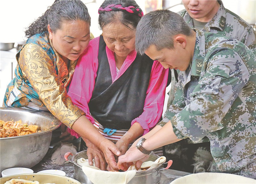 軍民共同制作團(tuán)結(jié)包子。