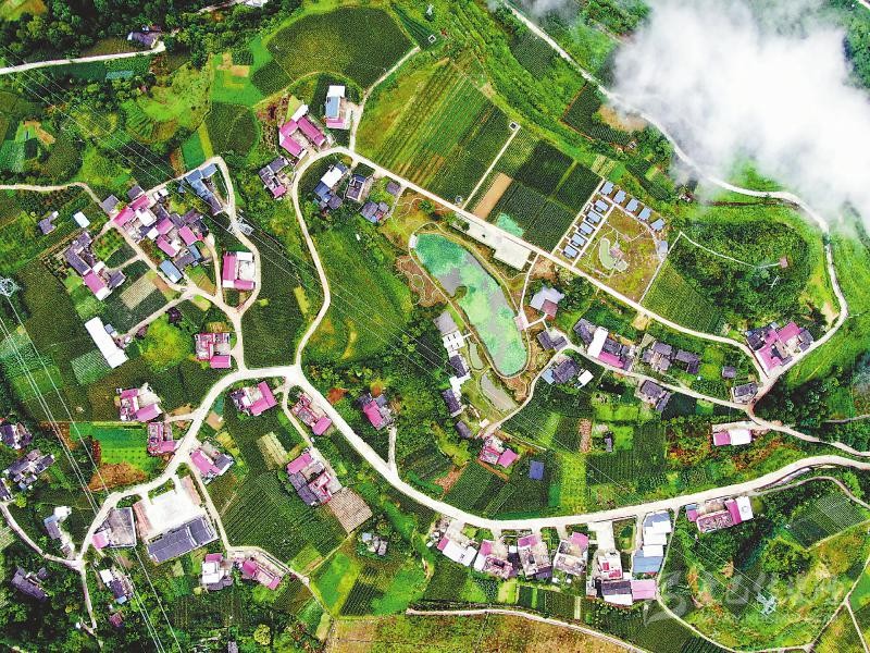 2020年8月17日海子坪村航拍。甘孜州瀘定縣海子坪村打造的“高科農(nóng)技+高端民宿”吸引了眾多游客前來觀光旅游,村民的生活也發(fā)生著美麗的蛻變。 四川日報全媒體記者衡昌輝攝