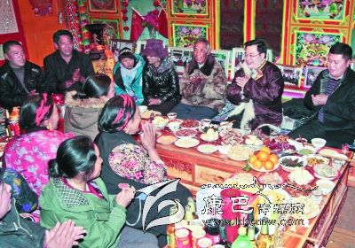 “開展群眾工作以來,大家在思想上發(fā)生了很大變化,不像過去比誰的房子大、誰耍得好,現(xiàn)在比的是誰家培養(yǎng)了幾個大學(xué)生、掙了多少錢。”道孚縣鮮水鎮(zhèn)農(nóng)民謝康生說,“這兩年,胡書記每年都和我們一起過春節(jié),我們很高興。”今年1月27日,農(nóng)歷臘月二十七,州委書記胡昌升冒著嚴寒,來到道孚縣與謝康生等六戶結(jié)對的藏族“親戚”歡慶新春、共度新年。