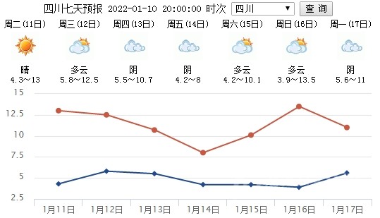 預(yù)計(jì)12日開始,盆地會(huì)有一次降水天氣過程,日平均氣溫也會(huì)隨之累計(jì)下降2~4℃。