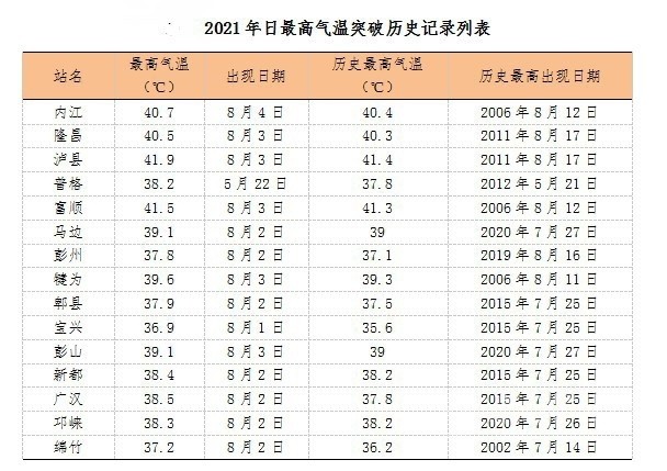 巴中、達(dá)州、廣安、南充、遂寧、資陽(yáng)、內(nèi)江和綿陽(yáng)8市有15縣站突破本站年降水量歷史最多記錄。