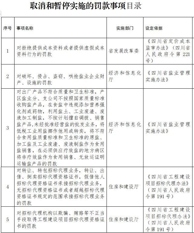四川省政府擬取消和暫停行使25項罰款事項