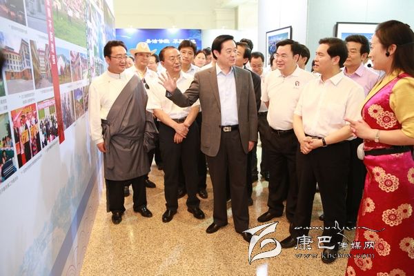 6月8日上午10時(shí),劉奇葆、王正偉來(lái)到民族文化宮,首先走進(jìn)四川甘孜藏區(qū)發(fā)展成就暨旅游圖片展現(xiàn)場(chǎng)。這里,展示的是甘孜藏區(qū)經(jīng)濟(jì)社會(huì)發(fā)展成就、自然風(fēng)光、歷史文化、民族風(fēng)情、田園藏寨等方面內(nèi)容的圖片。一幅幅圖片,一個(gè)個(gè)場(chǎng)景,劉奇葆都非常熟悉。在四川工作期間,他曾十幾次奔赴甘孜藏區(qū)考察,足跡遍布全州18個(gè)縣。劉奇葆仔細(xì)觀看展示圖片,并不時(shí)詢問(wèn)交通通信、優(yōu)勢(shì)產(chǎn)業(yè)等發(fā)展情況以及民生改善的情況。劉奇葆說(shuō),甘孜山川秀美,民族風(fēng)情濃郁,是一方充滿生機(jī)和活力的土地,希望甘孜立足自身實(shí)際,大力發(fā)展農(nóng)牧業(yè)和文化旅游業(yè),大力加強(qiáng)生態(tài)建設(shè)和環(huán)境保護(hù),大力改善民生,努力走出藏區(qū)科學(xué)發(fā)展、跨越發(fā)展之路。