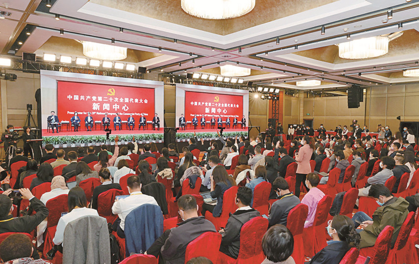 10月18日,中國共產(chǎn)黨第二十次全國代表大會(huì)新聞中心舉行集體采訪。黑龍江、上海、江蘇、浙江、安徽、福建、江西代表團(tuán)新聞發(fā)言人出席,介紹代表團(tuán)學(xué)習(xí)討論二十大報(bào)告情況,并回答記者提問。 這是分會(huì)場(chǎng)。 新華社記者 殷剛 攝