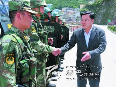 本網訊(記者 張濤 文/圖)7月6日下午,州委書記胡昌升利用周末休息時間,冒著炎炎烈日,到康定縣各治安卡點看望慰問了堅守崗位的一線執(zhí)勤民警,武警、消防官兵和城管隊員,勉勵大家要繼續(xù)發(fā)揚不怕苦、不怕累、頑強拼搏的作風和甘于奉獻的精神,為維護甘孜的和諧穩(wěn)定,確保人民群眾生命財產安全做出更大貢獻。