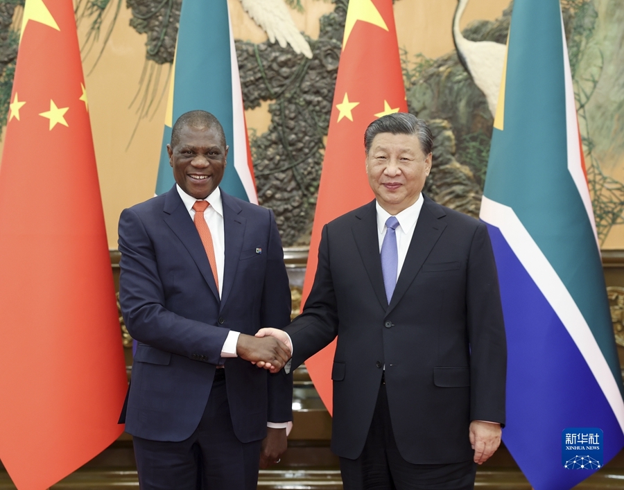 習(xí)近平強調(diào),中方支持南非探索符合本國國情的現(xiàn)代化道路,愿同南非進一步夯實政治互信基礎(chǔ),提升互利合作水平。中方愿同南非等非洲國家一道,落實中國支持非洲工業(yè)化、農(nóng)業(yè)現(xiàn)代化、人才培養(yǎng)三項舉措以及高質(zhì)量共建“一帶一路”的八項行動,打造一批高標(biāo)準(zhǔn)、惠民生、可持續(xù)的合作項目,提升中非合作的戰(zhàn)略性和可持續(xù)性,推動構(gòu)建高水平中非命運共同體。雙方應(yīng)繼續(xù)密切在金磚國家機制內(nèi)合作,加強發(fā)展中國家團結(jié)合作,推動全球治理體系朝著有利于發(fā)展中國家的方向發(fā)展。