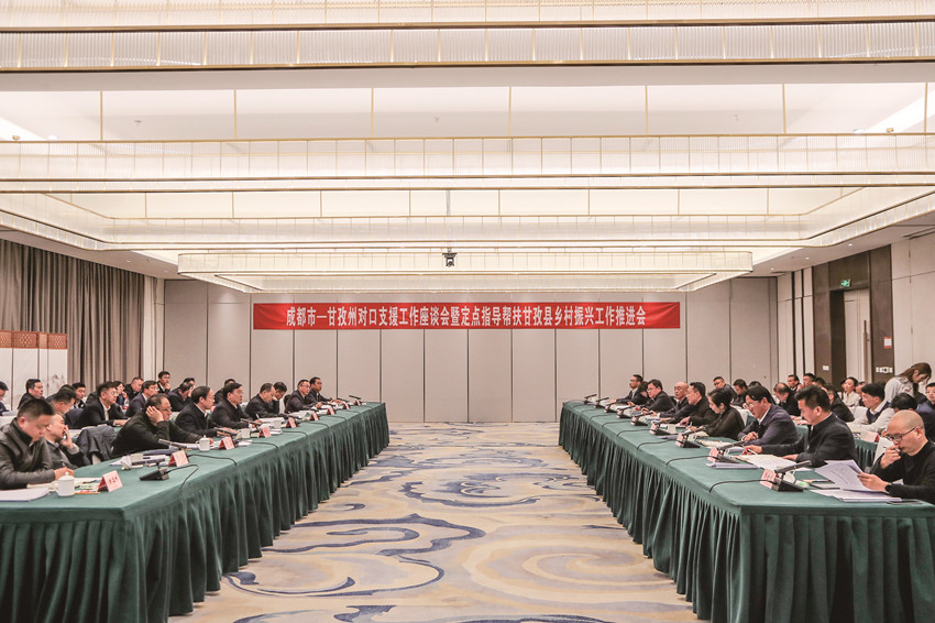 圖為成都市—甘孜州對口支援工作座談會暨定點指導幫扶甘孜縣鄉(xiāng)村振興工作推進會現(xiàn)場。