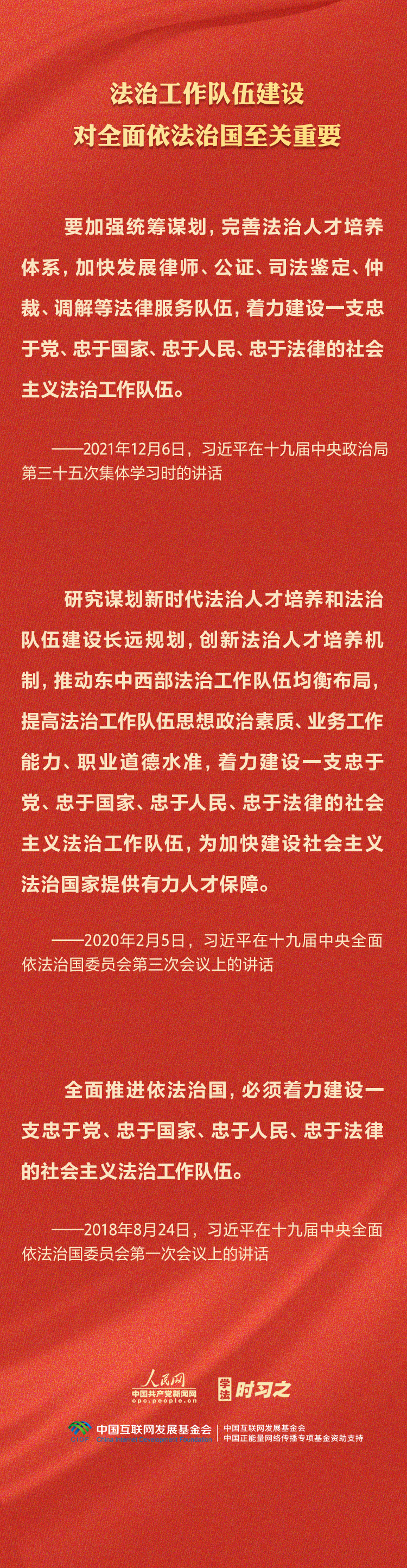 今年是貫徹落實(shí)黨的二十大精神的開(kāi)局之年。中共中央政治局決定從今年4月開(kāi)始,在全黨自上而下開(kāi)展學(xué)習(xí)貫徹習(xí)近平新時(shí)代中國(guó)特色社會(huì)主義思想主題教育。習(xí)近平法治思想是習(xí)近平新時(shí)代中國(guó)特色社會(huì)主義思想的重要組成部分,人民網(wǎng)·中國(guó)共產(chǎn)黨新聞網(wǎng)推出學(xué)法時(shí)習(xí)之·學(xué)習(xí)習(xí)近平法治思想系列策劃,本篇聚焦“堅(jiān)持建設(shè)德才兼?zhèn)涞母咚刭|(zhì)法治工作隊(duì)伍”。