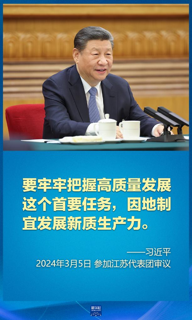 5日下午,習(xí)近平在參加他所在的十四屆全國(guó)人大二次會(huì)議江蘇代表團(tuán)審議時(shí)強(qiáng)調(diào),因地制宜發(fā)展新質(zhì)生產(chǎn)力。