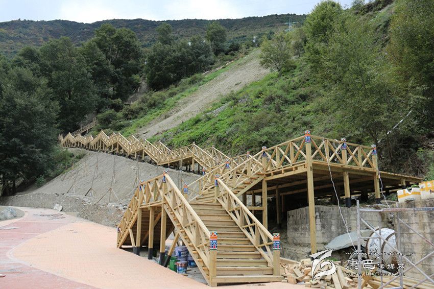 日前記者來(lái)到現(xiàn)場(chǎng),實(shí)地體驗(yàn)了在建中的爐巷·文成路。從甘孜日?qǐng)?bào)社到公主橋,一路上河堤已經(jīng)用漢白玉的石材建起了沿河欄桿,上面雕刻著吉祥八寶圖案。山路中還設(shè)計(jì)了一個(gè)較大的亭子,以這個(gè)亭子為中心,上通南無(wú)寺,下至將軍橋。一條藏式木制階梯長(zhǎng)廊與白土坎村的阿里布果游道相連接,站在長(zhǎng)廊的底端向上看階梯長(zhǎng)廊,長(zhǎng)廊就像一條在山間蜿蜒的巨龍,給爐巷·文成路添上了一抹神秘色彩。