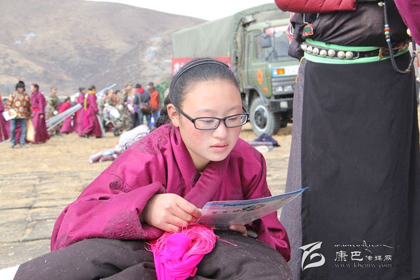 安置點小姑娘認真翻看藏漢雙語健康宣傳資料。