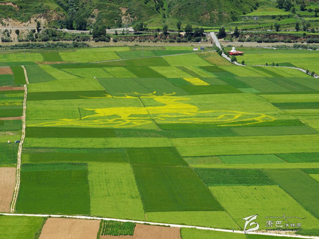 本網(wǎng)訊(記者 張兵 貢呷沙鄧 文/圖) 近日,記者在爐霍縣宜木鄉(xiāng)蝦拉沱村后山觀景平臺上看到一幅神奇的畫,在平坦的田野中清晰呈現(xiàn)出的一幅金鹿圖案,構(gòu)成圖案的材料是自然生長的油菜,襯托畫面的是正在不斷成熟的青稞。據(jù)縣農(nóng)牧和科技局領(lǐng)導(dǎo)介紹,這是該縣今年實施創(chuàng)意觀光農(nóng)業(yè)、全力發(fā)展休閑觀光農(nóng)業(yè)的成果。