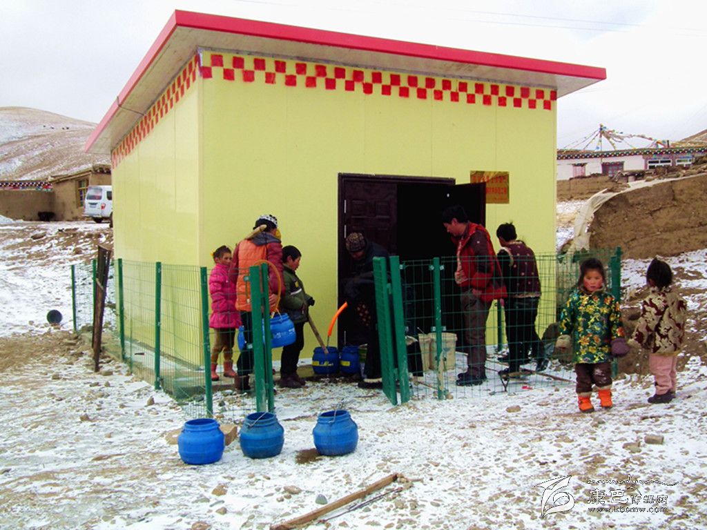 經(jīng)過反復(fù)設(shè)計(jì)檢驗(yàn),地質(zhì)工程勘察院最終采用了“泵房、水池雙重保溫、定時供水及時排水”的方案來解決以上問題。在儲水箱和里外出水管上都裹上厚厚的保溫隔熱材料,非凍期24小時按需供水,冰凍期因需要及時排水來確保水箱、水管無殘留水被冰凍而采取早中晚定時供水。通過一個水文年尤其是一個寒冬的考驗(yàn),50口示范井成功地為最低零下45度的石渠縣包蟲病區(qū)的居民提供了清潔水源,解決了高原寒冬供水的難題。
