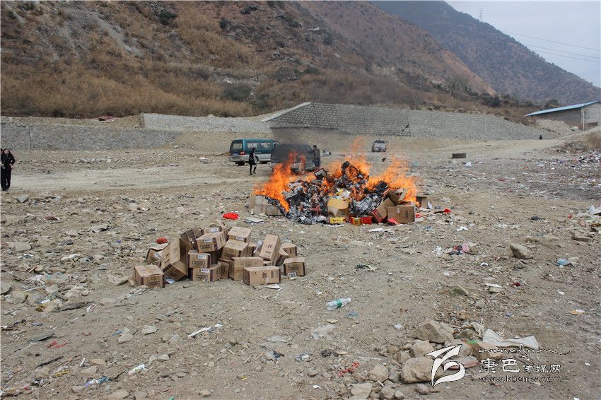 本網(wǎng)訊(謝靜 尼胡克布文/圖)3月15日,瀘定縣食品藥品工商質(zhì)量監(jiān)督管理局聯(lián)合司法局、發(fā)改局、農(nóng)牧局等相關(guān)部門以及煙草、桑吉卓瑪、瀘灃超市、電信等企業(yè),以“3.15”活動為契機,深入開展“新消費,我做主”年主題宣傳活動,現(xiàn)場接待了各類咨詢150余人(次),發(fā)放各種宣傳材料2000余份。宣傳活動結(jié)束后,縣食品藥品工商質(zhì)量監(jiān)督管理局將近期收繳的價值9.1余萬元的不合格食品、侵犯商標的商品,運送到垃圾場進行了焚毀。圖為焚燒現(xiàn)場?! ?br />