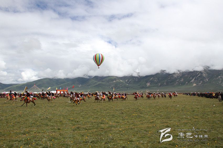 本網(wǎng)訊(葉強(qiáng)平 文/圖)8月1日,為期3天的2016年理塘熱氣球體驗(yàn)游、賽馬、徒步穿越格聶活動拉開序幕,觀眾可以坐上熱氣球看賽馬。