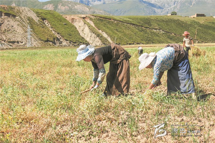 甘孜縣昔色鄉(xiāng)村民收割豌豆