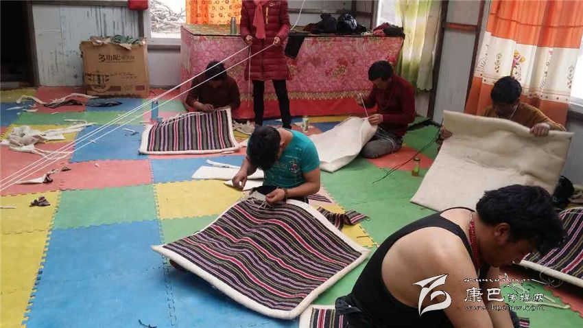 村民正在編織毛毯。