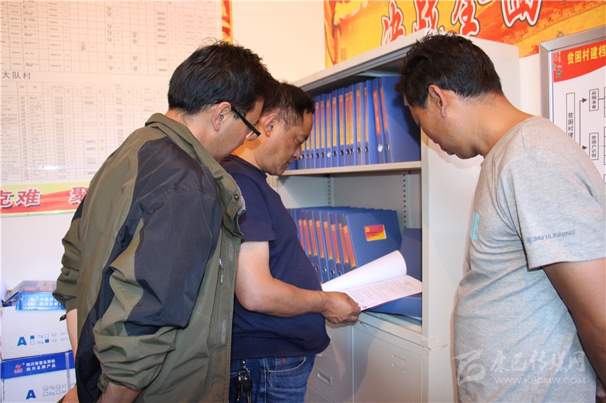 縣委副書記、縣長楊國清檢查精準扶貧專卷。
