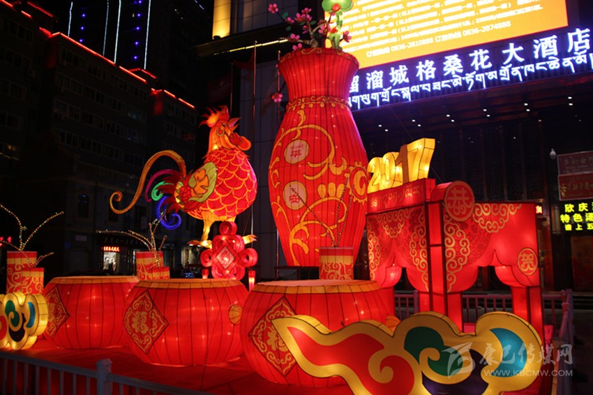 據該公司負責本次花燈設計的設計師鄭才學介紹,本次花燈每組主題不同,以全新的設計理念、歡樂祥和的氛圍、獨具特色的造型,向世人展現獨特的甘孜魅力。向陽橋頭的花燈主題為新春快樂,整個花燈呈火紅色,巨型“春”字搭配藏族繪畫中最常見但寓意深刻的吉祥八寶圖案,以及舞獅子、大紅燈籠、中國結等融為一體,為來到康定的客人第一時間送上熱情的新春問候;情歌廣場的花燈主題為鼓舞康定,以被譽為中國民間藝術瑰寶的大紅鼓作為人民歡慶盛世、贊美和諧的情感載體,充滿雄渾之氣,寓意著我州在時代發(fā)展的浪潮中擊鼓奮進、得勝而鳴;情歌大廈門口的花燈主題為金雞送平安,以中國傳統(tǒng)生肖年文化為背景,配合中國結和爆竹,喜慶而不失莊重,寓意著為全州人民送去平安吉祥;將軍橋頭的花燈主題為童子賀歲,火紅的燈籠搭配喜慶的福娃及爆竹,為全州各族人民送上新年的祝福;17隊三岔路口的花燈主題為和諧康定,巨大的荷花藝術造型結合動感的LED光源,造型高低錯落,寓意和諧、和美,體現在州委、州政府的堅強領導下,人民安居樂業(yè),和諧美滿。最霸氣、最吸引人的當屬情歌公園主題為吉祥多福的花燈,整個花燈由六個直徑一米半左右的福字燈籠,環(huán)繞一個直徑達3米左右的福字燈籠組合而成,主燈籠的燈柱高大而厚重,環(huán)繞的六個燈柱上配有吉祥八寶圖案,寓意著全州物產豐富,人民的生活紅紅火火,一年更比一年好。