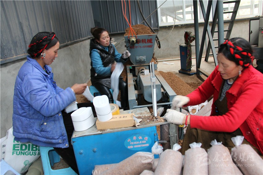 八角樓鄉(xiāng)帕姆嶺村村民帕塔志瑪已經(jīng)是熟練工了,去年9月,她被招收進(jìn)甘孜州日基農(nóng)業(yè)開發(fā)有限公司,經(jīng)過9個月的培訓(xùn)后,她實(shí)現(xiàn)了由農(nóng)民到產(chǎn)業(yè)工人的華麗轉(zhuǎn)身?!耙郧安皇炀毜臅r候,一天只能種3000多袋,現(xiàn)在可以種9000多袋,一天的收入有100元,下班后,吃住都在家里”。帕塔志瑪說,女兒在甘孜衛(wèi)校上學(xué),兒子在雅江中學(xué)上高一,兩個孩子一年的開支就要兩三萬元??伤齻円患颐磕甑慕?jīng)濟(jì)來源主要靠挖蟲草和撿松茸,還要受氣候和市場銷售影響,微薄的家庭收入,供養(yǎng)兩個孩子讀書感到力不從心。成為公司員工后,在培訓(xùn)期間,公司都按照現(xiàn)在工資的一半發(fā)放勞務(wù)費(fèi)。目前,她和丈夫都在公司工作,丈夫在粉碎組(將木材磨成粉末),一天有130元的收入,夫妻倆一個月就有7000多元的收入。在蟲草季節(jié),公司還要放蟲草假,工人們可以上山挖蟲草,這樣一來,家里的經(jīng)濟(jì)收入是以前的好幾倍。