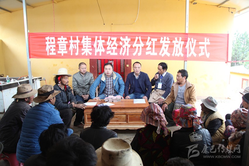 427日下午,雅江縣米龍鄉(xiāng)程章村熱鬧非凡、喜氣洋洋。 剛吃過午飯,村民們就齊刷刷地聚集到了村民活動室,等待村集體經(jīng)濟首次分紅。