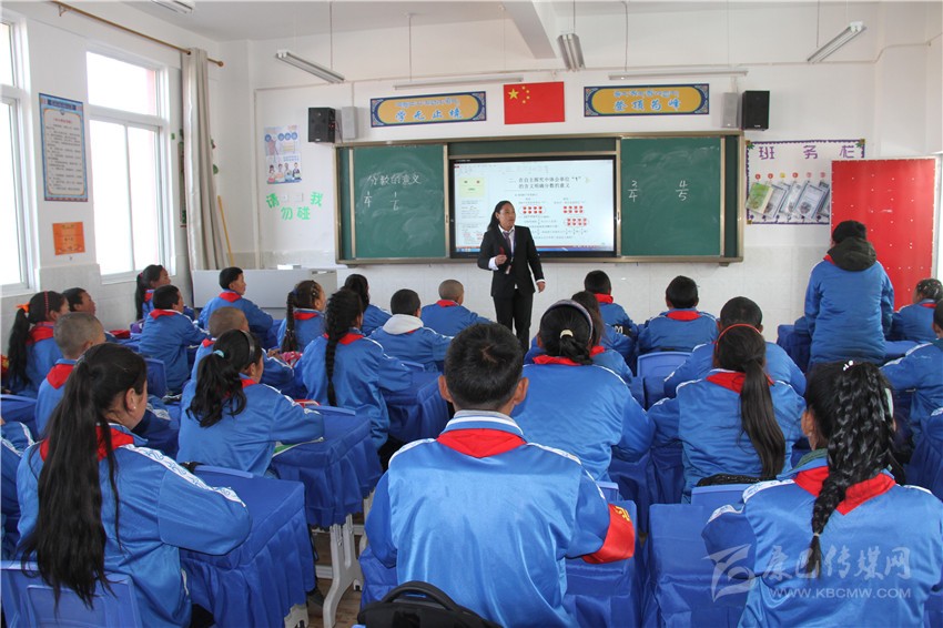 理塘縣四完小學(xué)生在多媒體教室上課。