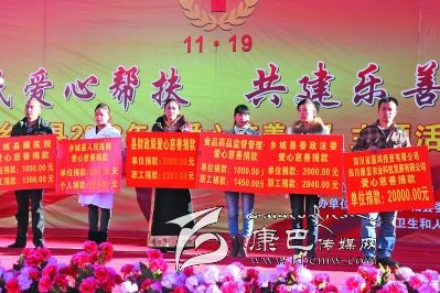 本網(wǎng)訊(何才華 文/圖)11月18日,鄉(xiāng)城縣愛心慈善募捐活動(dòng)在該縣香巴拉休閑廣場(chǎng)舉行,來(lái)自全縣的機(jī)關(guān)干部、宗教界代表、個(gè)體工商戶代表、建筑施工企業(yè)等各界人士近2000人為需要救助者獻(xiàn)出自己的一份愛心。活動(dòng)現(xiàn)場(chǎng)募捐資金532998元。