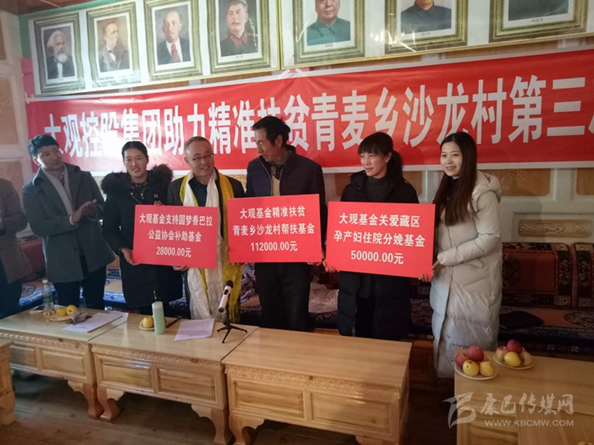 據(jù)悉,上海大觀慈善基金會(huì)黃宏文理事長一行先后到由于室內(nèi)電線短路遭受火災(zāi)的水洼鄉(xiāng)和定波鄉(xiāng)受災(zāi)戶家中探望,詳細(xì)了解災(zāi)情和災(zāi)后生產(chǎn)生活狀況后,分別捐贈(zèng)7萬元和3萬元。隨后,前往青麥鄉(xiāng)沙龍村召開大觀控股集團(tuán)幫扶沙龍村精準(zhǔn)扶貧推進(jìn)會(huì),發(fā)放幫扶資金11.2萬元用于該村各項(xiàng)事業(yè)的發(fā)展,同時(shí)為鄉(xiāng)城縣衛(wèi)計(jì)局農(nóng)村產(chǎn)婦住院分娩基金捐贈(zèng)5萬元,為圓夢香巴拉公益協(xié)會(huì)捐贈(zèng)2.8萬元。