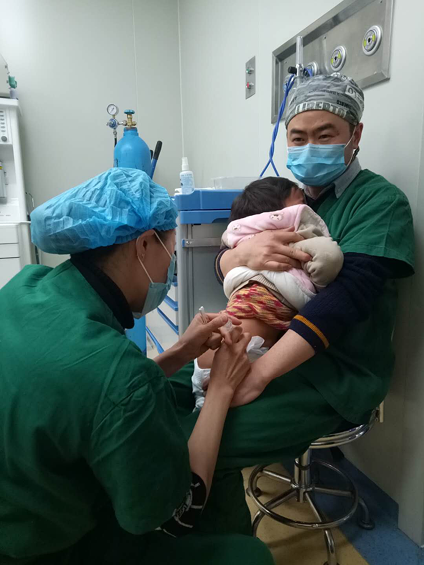面對高海拔的情況和患兒的病況,陳勇醫(yī)生施展全身解數(shù),充分利豐富的經(jīng)驗和精湛的技術,歷時1小時,順利完成了麻醉手術,術中患兒生命體征平穩(wěn)。