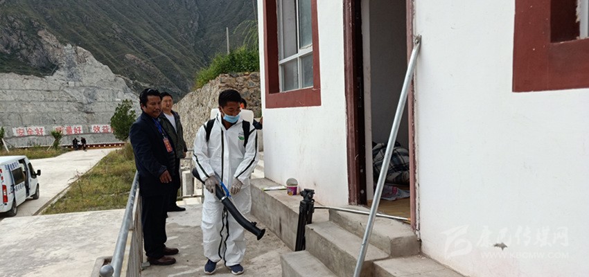 疾控人員正在巴塘安置點進行消毒。