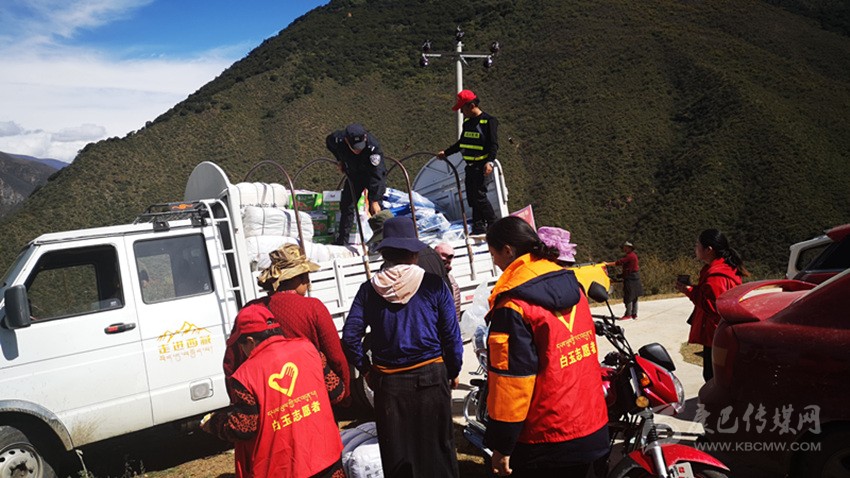 白玉縣安置點正在發(fā)放救災物資。