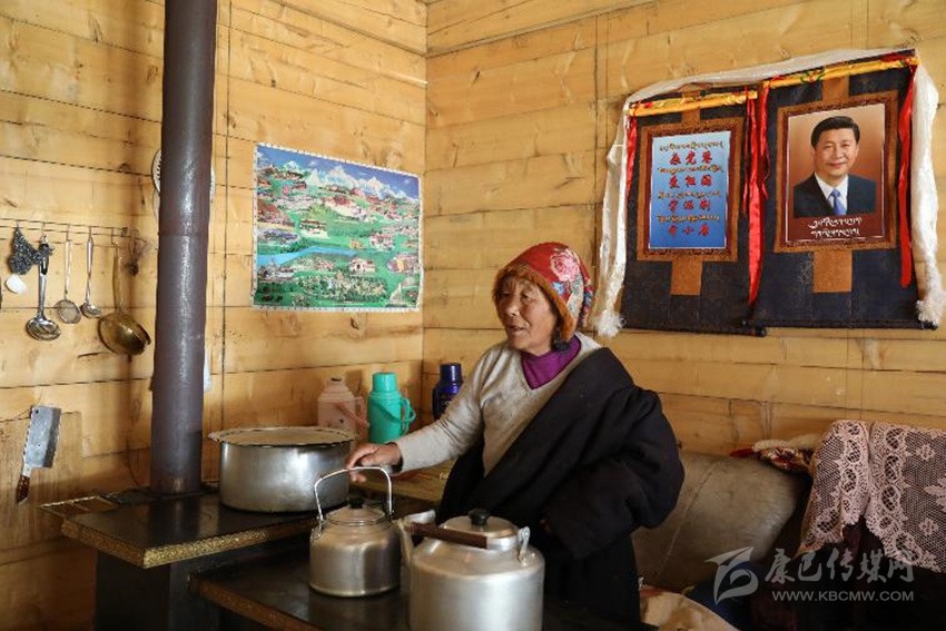 “我是村上第一個掛習(xí)主席唐卡畫像的脫貧戶!這幅黑白唐卡是我入住新房當(dāng)天掛的;幾天后,畫師又送我一幅彩色的,于是我就把這兩幅唐卡并排掛在客廳里。如今,全村家家戶戶都在客廳里掛上了習(xí)主席彩色唐卡。要是沒有習(xí)主席提出實(shí)施精準(zhǔn)扶貧,恐怕我們現(xiàn)在還住在山上受窮!”11月28日上午,當(dāng)筆者來到距德格縣城37公里的龔埡鄉(xiāng)雨托村采訪時,77歲的建檔立卡貧困戶呷瑪西繞指著習(xí)主席唐卡畫像激動地說。
