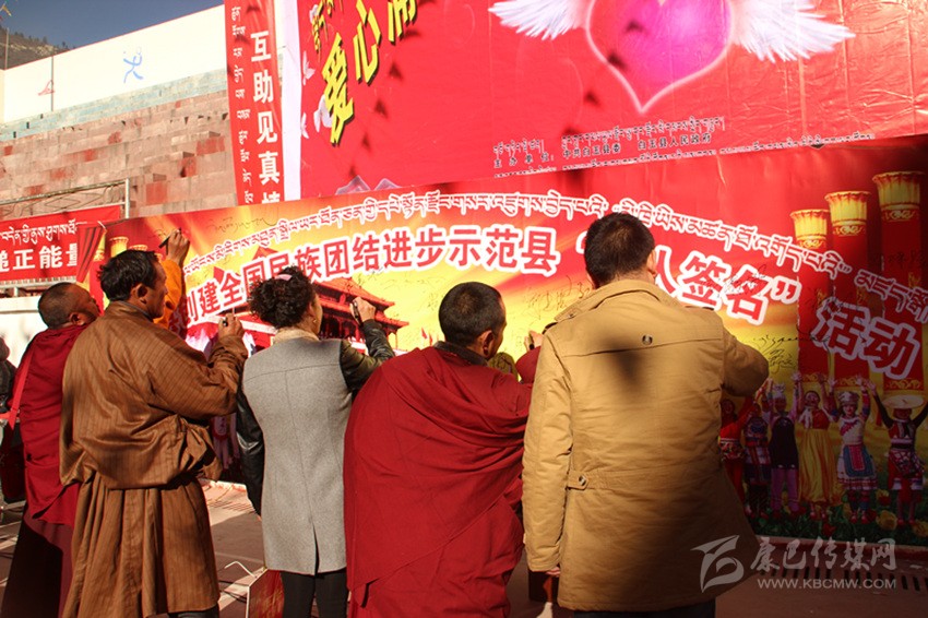 其實,在白玉,像澤稱降措這樣感人肺腑的故事絕非個案。采訪中,筆者細(xì)細(xì)梳理五年來白玉的創(chuàng)建舉措與成績,完全可以用“務(wù)實”“扎實”這四個字來形容。自2014年創(chuàng)建活動啟動以來,縣委、縣政府嚴(yán)格按照“三年創(chuàng)建、四年提升”要求,緊扣“八進(jìn)活動、共建對子”兩個關(guān)鍵,聚焦“民族團(tuán)結(jié)促發(fā)展、民族團(tuán)結(jié)促穩(wěn)定、民族團(tuán)結(jié)促民生”三大目標(biāo),采取“精準(zhǔn)安排、精準(zhǔn)施策、精心打造、精細(xì)管理”四項舉措,并通過層層簽訂目標(biāo)責(zé)任書和層層落實創(chuàng)建標(biāo)準(zhǔn)、測評指標(biāo),進(jìn)而形成了“黨委統(tǒng)一領(lǐng)導(dǎo)、黨政齊抓共管、部門各司其職、社會廣泛參與”的創(chuàng)建工作格局;采取“年度定方案、季度有督查、月月抓推進(jìn)、層層重落實”的方式,通過召開專題會、動員會、現(xiàn)場會、督導(dǎo)會、匯報會等形式,抓問題、添措施、促整改、補(bǔ)短板、求提升,一系列動真碰硬的推進(jìn),使得創(chuàng)建工作由“虛”變“實”;按照“精準(zhǔn)宣講、掛圖作戰(zhàn)、對單宣講、對村消號、定學(xué)式”的宣講思路,采取“縣到鄉(xiāng)、鄉(xiāng)進(jìn)村、村入戶、寺廟與僧尼”四個面對面等方式,并結(jié)合常態(tài)化開展的“四下鄉(xiāng)”活動,廣泛學(xué)習(xí)宣傳黨的民族理論、宗教政策、法律法規(guī)以及各項惠農(nóng)惠民政策。五年來,全縣累計出動宣講服務(wù)人員1180人次,開展宣講宣教、“四下鄉(xiāng)”活動以及民族團(tuán)結(jié)“八進(jìn)”活動多達(dá)988場次,覆蓋基層干部、農(nóng)牧民群眾和及寺廟近8萬人次,發(fā)放各類宣傳資料2.3萬余份、圖書光盤4500余本(張),贈送各種書籍4130余冊,放映電影152場次;在主要街道、繁華路段、出租車頂屏、燈箱燈桿以及干線公路沿線堡坎,設(shè)置LED屏、宣傳牌、滾動標(biāo)語和墻體標(biāo)語,推送各類創(chuàng)建信息上萬余條,在各機(jī)關(guān)、單位、醫(yī)院、學(xué)校、寺廟、鄉(xiāng)鎮(zhèn)、村組(社區(qū))設(shè)置民族團(tuán)結(jié)標(biāo)語、宣傳櫥窗、展板和文化墻,推出各類宣傳欄2145個、宣傳展板 435個;在縣級宣傳平臺開設(shè)專欄,完成各類主題宣傳300余場次;舉辦創(chuàng)建“萬人簽名”、鍋莊節(jié)、演講比賽、籃球友誼賽、知識競賽、文藝演出等各類民族團(tuán)結(jié)主題活動近20場,實現(xiàn)了創(chuàng)建宣講宣傳宣教全方位、多層面、立體式和廣覆蓋;切實將民族團(tuán)結(jié)工作與脫貧攻堅、基層黨建、群眾工作、鄉(xiāng)村治理、依法治縣等有機(jī)結(jié)合,大力開展干群結(jié)對認(rèn)親、干部聯(lián)寺聯(lián)僧、支部共建共創(chuàng)以及警民共建等活動;切實在廣大農(nóng)牧民群眾、幫扶援建隊伍、宗教寺院、學(xué)校師生、企業(yè)以及部隊中發(fā)現(xiàn)典型、宣傳典型,進(jìn)而在全縣上下形成了“學(xué)先進(jìn)、趕先進(jìn)、當(dāng)標(biāo)兵”的濃厚氛圍;采取政策傾斜、整合項目、配套資金等措施,狠抓示范點(diǎn)規(guī)范化建設(shè)。目前,全縣所有鄉(xiāng)(鎮(zhèn))、縣級黨政機(jī)關(guān)、武警部隊,45%以上的村(社區(qū))、企事業(yè)單位和寺廟已成為民族團(tuán)結(jié)進(jìn)步示范地區(qū)或示范單位;……精準(zhǔn)發(fā)力、持續(xù)給力的創(chuàng)建活動,有效形成了創(chuàng)建活動“人人參與、人人推動、人人負(fù)責(zé)、人人共享”的喜人局面。
