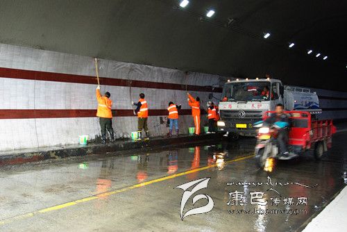 4月2日,瀘定公路分局瀘定黨小組組織機(jī)關(guān)黨員干部開展黨員義務(wù)勞動活動,對國道二康路紅軍橋隧道進(jìn)行了大清洗。清洗采用以隧道清洗車為主、人工清洗為輔的作業(yè)方法,并安排專職交通指揮人員配合作業(yè)人員對清洗路段進(jìn)行了交通管制,以確保作業(yè)人員及過往車輛行人的安全。同時(shí),組織公路養(yǎng)護(hù)人員對兩條省道隧道內(nèi)的燈具、內(nèi)壁和反光標(biāo)牌標(biāo)線等進(jìn)行了清洗。(賀淑明 攝)