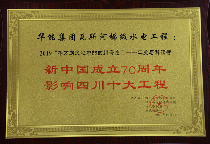 作為在國內(nèi)產(chǎn)生巨大影響的四川境內(nèi)的標(biāo)志性工程,2019年10月,瓦斯河梯級水電工程成功入選“新中國成立70周年影響四川十大工程”工業(yè)與科技榜。
