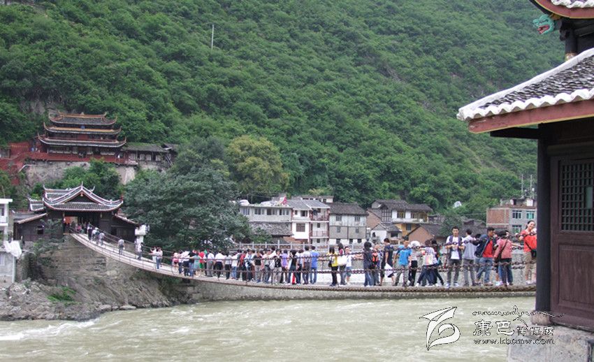 瀘定橋上游人如織。