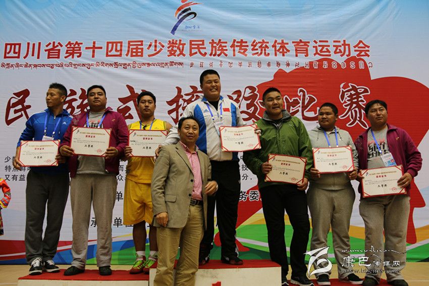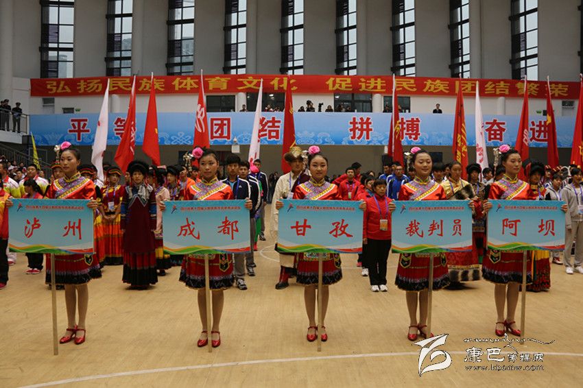 2014年11月4日—9日,四川省第十四屆少數(shù)民族傳統(tǒng)體育運(yùn)動(dòng)會(huì)在宜賓市隆重舉行。在此次民運(yùn)會(huì)上,由138人組成的甘孜州代表團(tuán)代表112萬(wàn)父老鄉(xiāng)親參加了本屆民運(yùn)會(huì)射弩、民族式摔跤(格、北嘎、且里西、絆跤)、蹴球、押加、珍珠球、高腳競(jìng)速、板鞋競(jìng)速、陀螺、苗族手毽等9個(gè)競(jìng)賽項(xiàng)目和競(jìng)技類(lèi)、技巧類(lèi)、綜合類(lèi)3個(gè)表演項(xiàng)目的比賽。