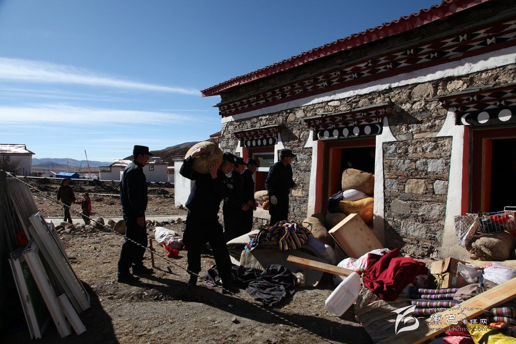 26日一大早,記者驅(qū)車趕往塔公江巴村采訪,在江巴村一戶受災(zāi)群眾家院壩內(nèi),看到了一群熟悉的聲影,他們正在幫村民巴扎轉(zhuǎn)移糧食。村民巴扎家堆放糧食的房屋外墻受地震影響裂開了幾到明顯的口子,磚瓦散落一地。主人家非常擔(dān)心房子垮了將糧食掩埋,這是他辛苦了一年的勞動(dòng)成果,更是一家人過冬的口糧,正當(dāng)巴扎心焦如何將這兩千余斤糧食如何轉(zhuǎn)移到安全地帶時(shí),他們出現(xiàn)了。當(dāng)他們了解到巴扎想盡快把糧食和其他物品轉(zhuǎn)移到安全地點(diǎn)時(shí),他們二話不說,簡(jiǎn)單分工后,馬上就忙開了。他們扛的扛、拉的拉、背的背、抬的抬……很快就將糧食以及其他零散物品轉(zhuǎn)移到巴扎家的安全地帶??吹竭@一切,一旁的巴扎對(duì)他們翹起了大拇指用很不流利的漢語說到:實(shí)在太感謝你們了,卡卓、卡卓……