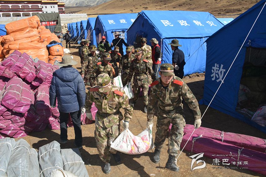 州森警支隊參謀長帶前指和康定中隊60人到達(dá)震中塔公鎮(zhèn)奪讓村和木雅祖慶學(xué)校。官兵看到校舍慘景和師生驚慌失措表情,忘記了奔波疲勞和自身安危,有序疏散30名師生、搶救學(xué)校2臺受損車輛,冒著零下近10度的低溫,連夜為師生搭建帳篷17頂、簡易廁所10個,參戰(zhàn)官兵一夜未睡奮戰(zhàn)至黎明。23日8時10分,參戰(zhàn)的森警官兵又奉命轉(zhuǎn)戰(zhàn)至瓦澤鄉(xiāng)魚子西1、2、3村,為藏牧民轉(zhuǎn)移牦牛等牲畜200余頭,從危房中搬運(yùn)大米、青稞等糧食11.8噸,沙發(fā)、銅火爐、電視機(jī)等1680余件(套)。24日上午官兵又深入到瓦澤鄉(xiāng)麥巴村,為受災(zāi)群眾拆除危房2間、搬運(yùn)危房內(nèi)貴重物品10余噸,下午,抗震救災(zāi)指揮部又緊急調(diào)參戰(zhàn)森警官兵為沙德鄉(xiāng)運(yùn)送棉帳篷等救災(zāi)物資,支隊前指帶50人動用6臺車輛機(jī)動110公里到達(dá)沙德鄉(xiāng)政府,又連夜劃分四個行動小組為沙德鄉(xiāng)7個偏遠(yuǎn)村(組)將帳篷運(yùn)送到位,官兵一夜未睡將10余頂棉帳篷依次搭建到位。25日上午,官兵又接到塔公鎮(zhèn)扎西寺僧尼告急,60名官兵顧不上吃飯,緊急出動運(yùn)輸15頂棉帳篷,奮戰(zhàn)扎西寺5個安置點(diǎn),至晚19時才搭建完畢,官兵就座運(yùn)兵車?yán)锎蝽镄菡?6日上午,武警總部工作組看望慰問參戰(zhàn)一線官兵,官兵精神振作,按抗震救災(zāi)指揮部指示,60名官兵在聯(lián)指物資發(fā)放中心,搬運(yùn)裝卸棉帳篷、棉大衣、棉被等越冬衣物和礦泉水、大米、面粉、蔬菜等生活物資68噸。目前,60名官兵仍奮戰(zhàn)一線,雅江大隊、道孚大隊部分官兵在各自轄區(qū)展開震后自救互救行動。