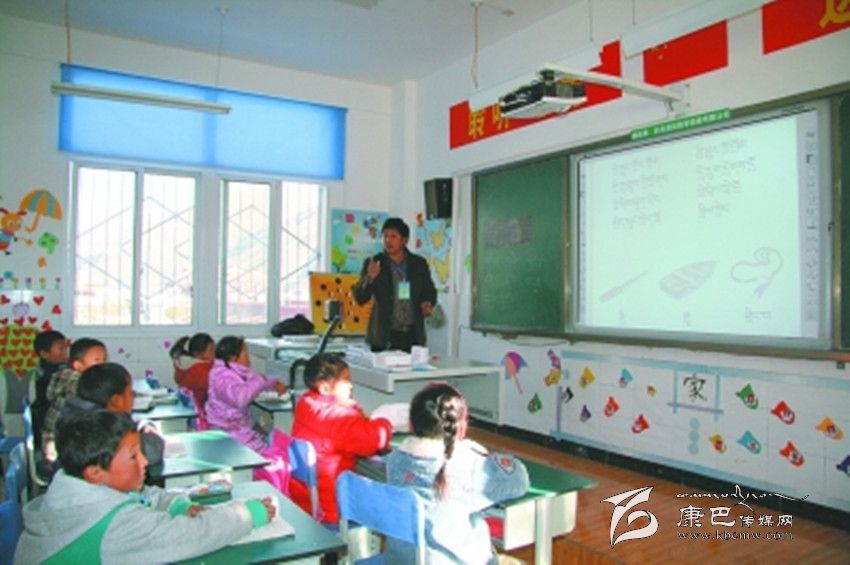 爐霍縣仁達(dá)鄉(xiāng)中心校教師正在利用多媒體教學(xué)。 李益眾 攝
