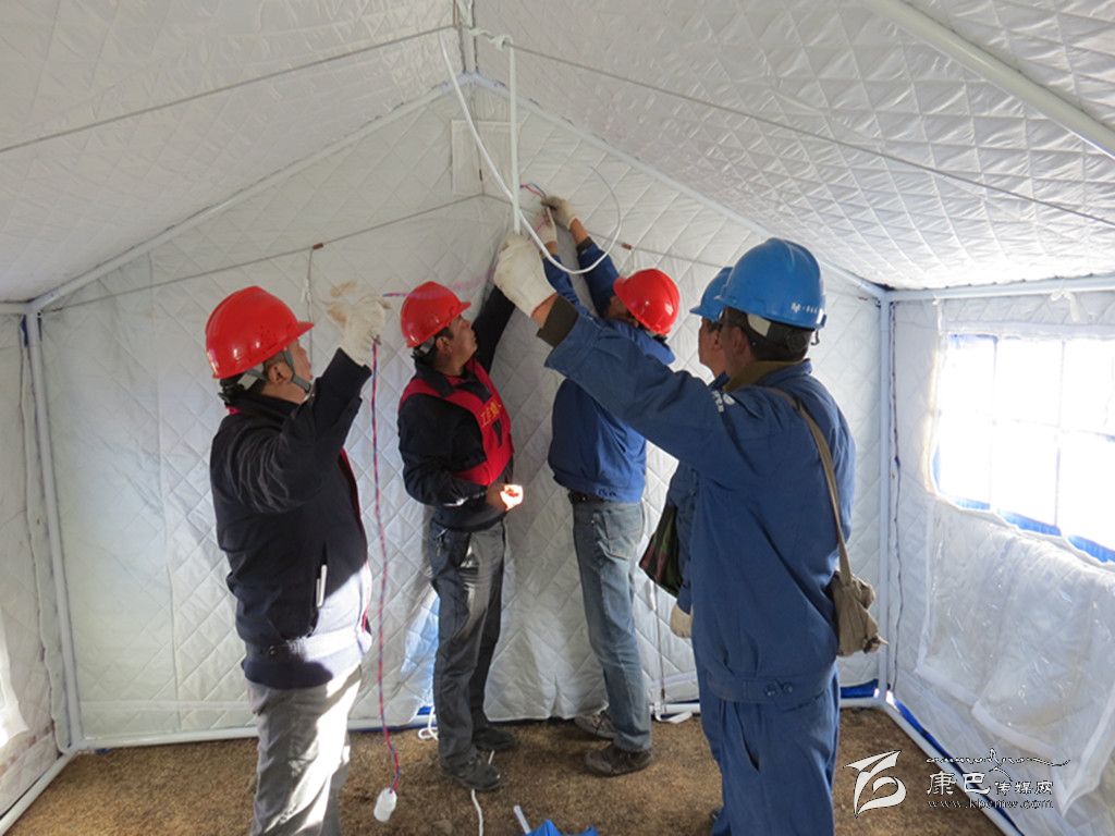 奪拉二村有4個變壓器臺區(qū),其中2個臺區(qū)為人員較多的木雅祖慶學校,地震使學校住宿樓變?yōu)槲7浚=?000名學生轉(zhuǎn)移至學??盏厣系陌仓命c。為了讓安置點內(nèi)的受災師生和應急指揮中心盡快用上電,黨員突擊搶險小分隊不僅要在安置點迅速安裝應急照明設施,同時還要從圍墻和學校食堂的樓頂上重新布放近3段2公里長的臨時電源線。學校圍墻因地震而搖搖欲墜,稍微用點力,墻、磚塊或水泥就會掉下來,面臨這一難題,公司黨總支沉著應對,迅速組織塔公供電所與新都橋供電所的黨員干部趕往震中,同時安排其余供電所的黨員干部迅速增援。先期到達的救援人員在余震不斷發(fā)生的情況下,對受損供電設備及線路進行了緊急處理;在后期人員趕到后,公司黨總支迅速研究制定工作方案,科學分工:第一組黨員突擊搶險隊負責隱患排查,第二組黨員突擊搶險隊負責電線布放,第三組黨員突擊搶險隊負責救災帳篷的照明安裝。在三個小組隊員的共同努力下,用近三個小時的時間就解決了應急指揮中心、醫(yī)療隊和臨時安置點的照明安裝這一難題。