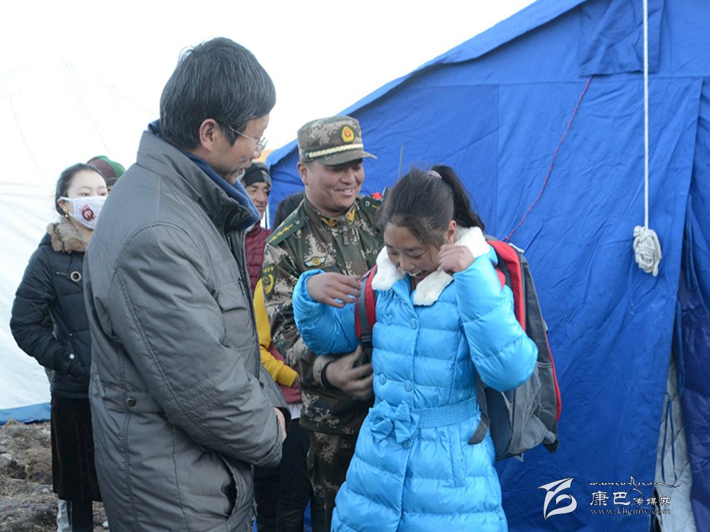 由于受此次地震影響,西康福利學(xué)校的孩子們已經(jīng)放假回到親戚家寄宿。塔公救災(zāi)一線的官兵們利用休息時(shí)間,向胡忠仔細(xì)打聽5個(gè)孤兒的身高和臨時(shí)住址,大家主動(dòng)集資專門采購了羽絨服、書包、文具和米面油等物資。10日下午,官兵們?cè)谖骺蹈@麑W(xué)校老師的陪同下,驅(qū)車百余公里,先后深入到塔公鎮(zhèn)江巴村、多拉一村、各日馬村、下馬龍村和朋布西鄉(xiāng)奪讓村,跨河溝、爬山坡,鉆帳篷、進(jìn)板房,提著新買的衣服、書包,扛著米面,逐一走訪這些孤兒所寄宿的家,勉勵(lì)他們?cè)诶Ь持凶詮?qiáng)不息,努力學(xué)習(xí),為自己的夢想而頑強(qiáng)拼搏,并與孤兒所寄宿的親戚細(xì)心溝通交流,囑咐他們照顧好可憐的孩子,有困難找武警,大家齊心協(xié)力為孤兒創(chuàng)造一個(gè)溫暖的家,為孤兒的成長成才盡最大的努力。